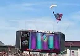 Skydiver Snagged on Scoreboard During Virginia Tech Event