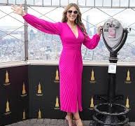 During a brief jaunt through Midtown, she opted for a more casual look, pairing simple black trousers with a fuchsia pink striped knitted cardigan. Her day concluded with a noteworthy appearance at the New York Stock Exchange, where she rang the closing bell in a sensational fitted hot pink midi dress featuring balloon-capped sleeves adorned with bejeweled flowers.
