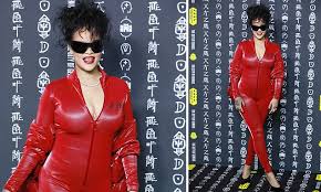 Rihanna made a striking entrance at The City of Genius Moncler event during Shanghai Fashion Week, turning heads in a skintight red catsuit featuring a daring plunging neckline. The eye-catching outfit hugged her curves perfectly, showcasing her bold fashion sense and confidence.