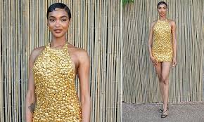 The British supermodel attended the event wearing a gold, bejewelled halter-neck mini dress, which prominently showcased her physique and garnered considerable public and media attention.