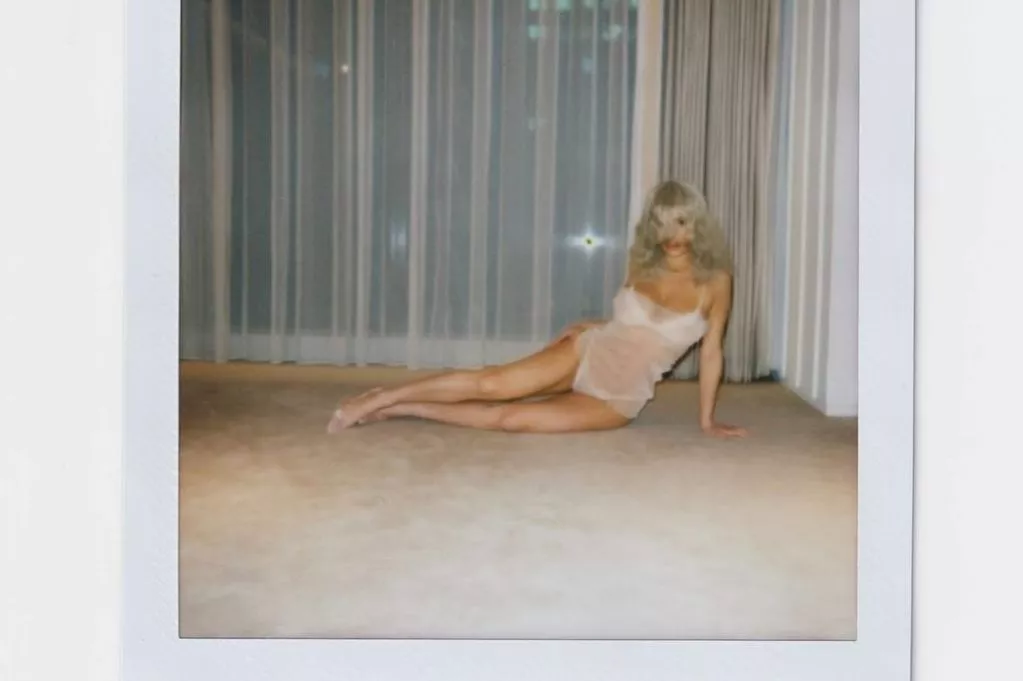 In keeping with the retro aesthetic of the photo shoot, Ms. Censori styled her hair in a voluminous, blonde coiffure characterized by 1980s-inspired waves and a prominent fringe.