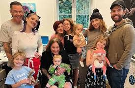 Mr. Osbourne was also captured in a serene group photo, lying back and embracing his two eldest granddaughters—an image evocative of domestic harmony and familial closeness. In a separate picture, he offered a humorous side grin as he posed alongside his former daughter-in-law, who appeared to be holding her youngest daughter.