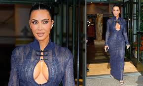 The 45-year-old entrepreneur and television personality, who recently addressed public comments about her daughter North West, 12, turned heads in a form-fitting navy blue Dior Spring/Summer 1999 co-ord set. The ensemble—comprising a maxi skirt and matching cardigan with a strategically placed cutout—showcased her figure and exuded vintage sophistication.