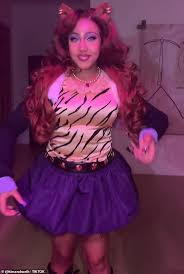 North West, aged 12, the eldest child of media entrepreneur Kim Kardashian and recording artist Kanye West, and a recognized TikTok personality in her own right, was observed on the social media platform wearing a tiger-themed costume consisting of a skirt and digitally enhanced feline eyes, apparently applied through a visual filter.