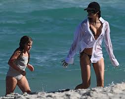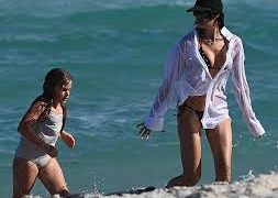 The 40-year-old model was accompanied by her eight-year-old daughter, Lea, whom she shares with former partner Bradley Cooper. The pair were photographed entering the water together and walking along the shoreline during the daytime outing.